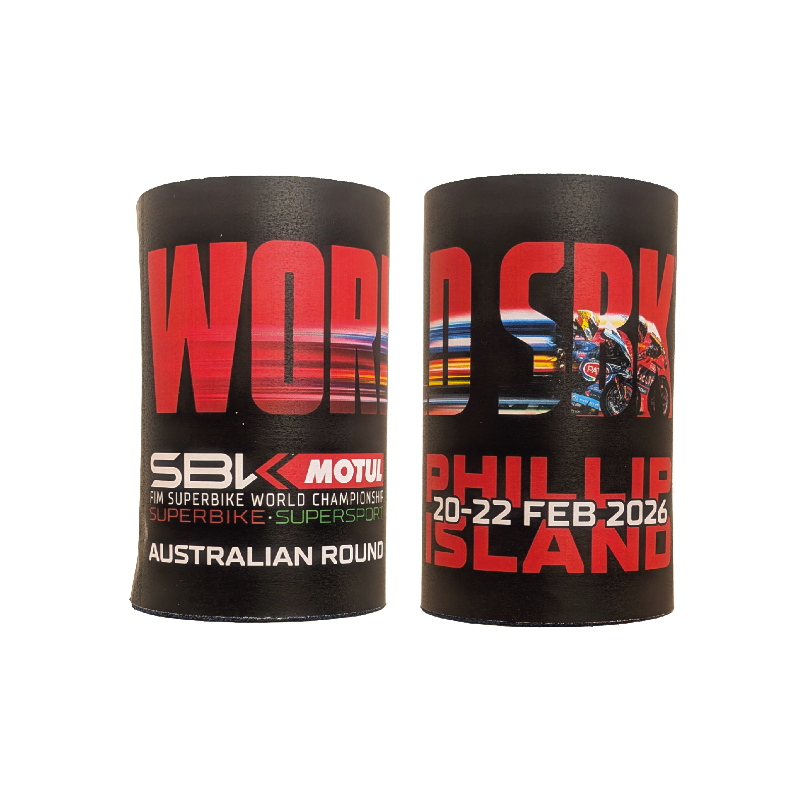 The 2026 Superbike World Championship Poster Coldy Holder features a full colour print of the event poster to one side of the coldy and is complemented by the full SBK>MOTUL event logo on the other.