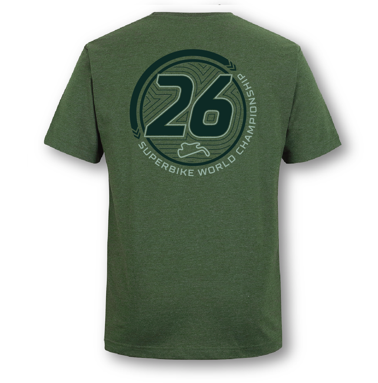 The 2026 Superbike World Championship Shield t-shirt features a large print on the front of this years Shield design, and is complimented by a monotone back print.